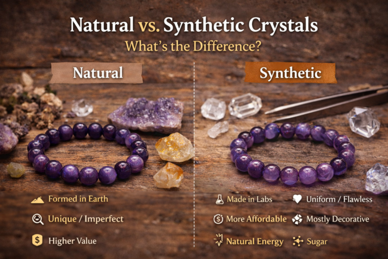 When shopping for crystal bracelets, one of the most common questions is:Are these crystals natural or synthetic? Understanding the difference is essential—not only for quality but also for value and authenticity. In this guide, we’ll break down everything you need…